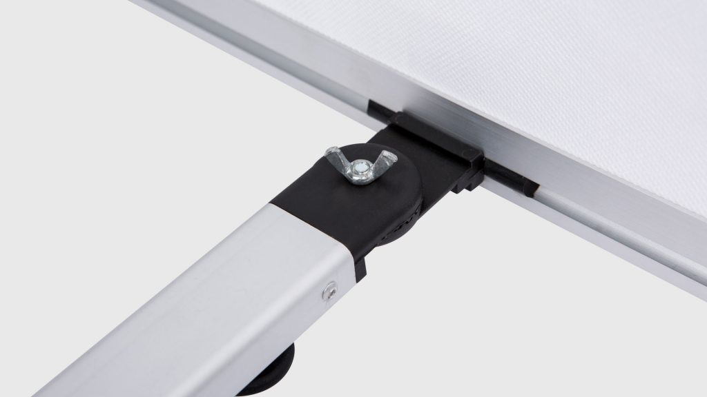 Beide Banner-Modelle sind schnell ohne Werkzeug aufgebaut und lassen sich bequem in der mitgelieferten Tasche transportieren.